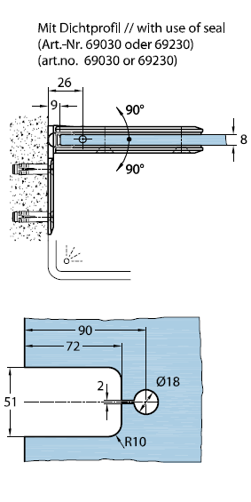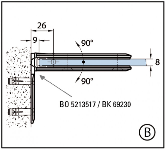 06110 31 Петля Milano, стена-стекло 90°, цвет глянцевый хром