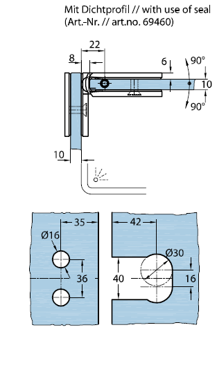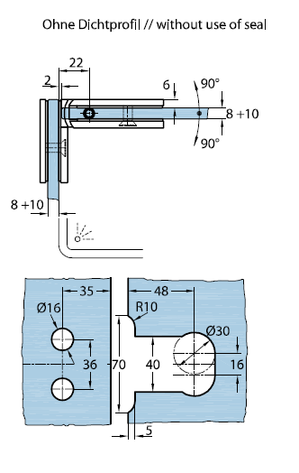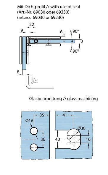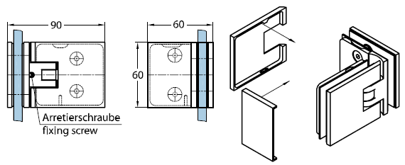 07840 31 Петля Milano Original, стекло-стекло 90°, цвет глянцевый хром