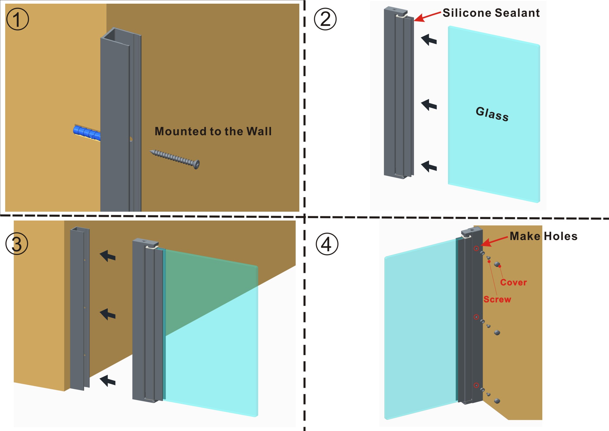 Крепление стекла в профиль фиксируется с помощью герметика