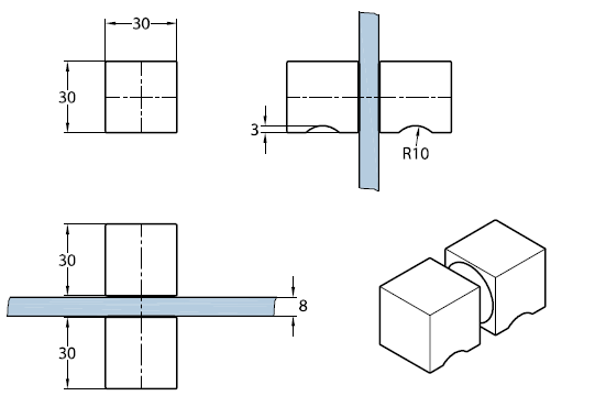 Размер 30 х 30 х 30 х 30 мм.