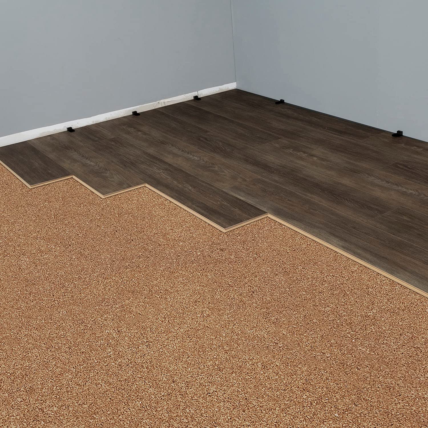 В некоторых случаях листы ДСП используются как подложка для пробки, клеясь специальным клеем. Это обеспечивает избежание смещения слоев друг относительно друга. Единственное условие - наличие ДСП не должно значительно повышать уровень пола в помещении. Однако этот этап не является обязательным.