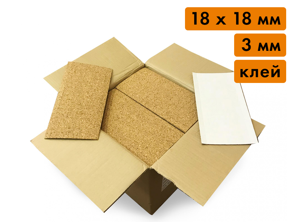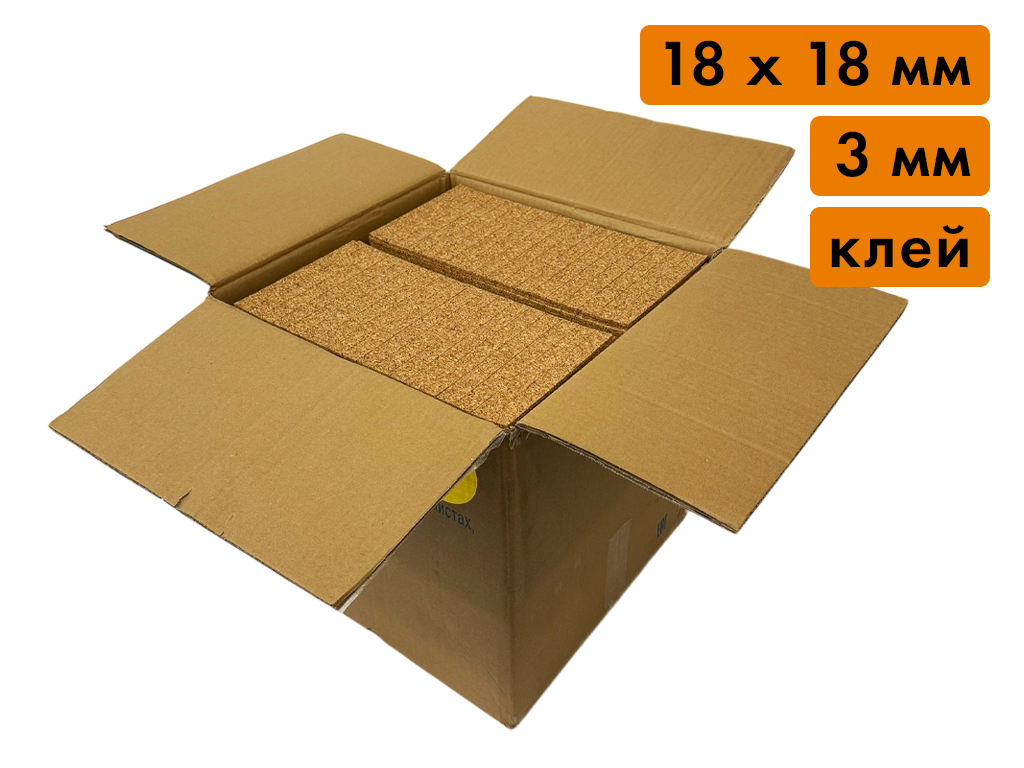 Пробковая прокладка в листах, размер 18х18 мм, толщина 3 мм (клеящий слой, 35'478 шт)